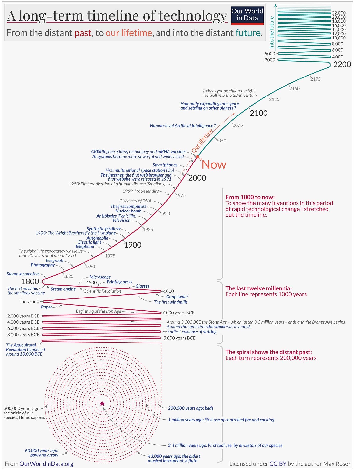 “The pace of technological change is much faster now than it has been in the past, according to Our World in Data. It took 2.4 million years for our ancestors to control fire and use it for cooking, but 66 years to go from the first flight to humans landing on the moon.”3