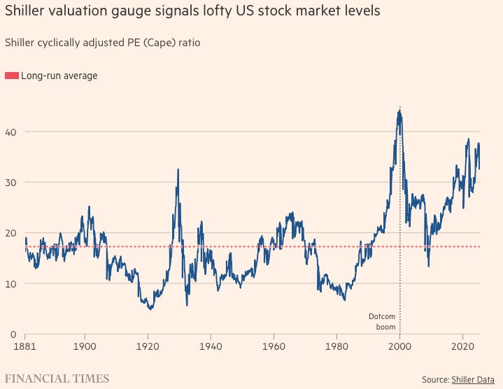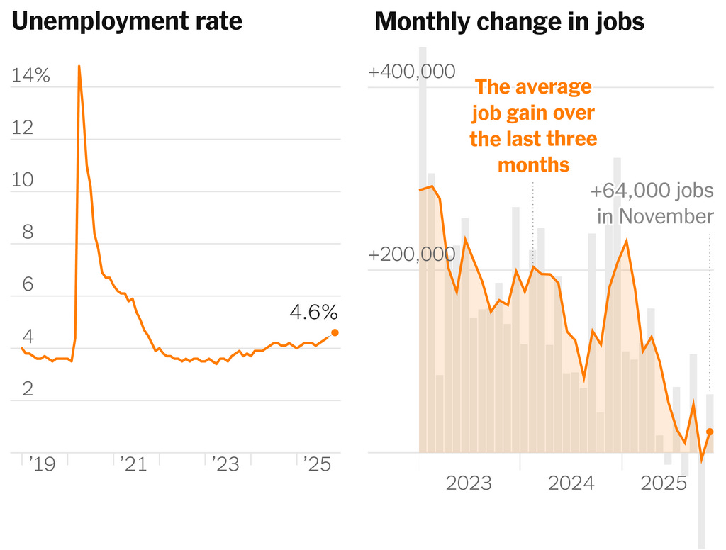 We’re still at 2.7% YoY as of November 2025. The Fed targets an average annual 2% and they seem to have paused around their own calculation4 of the natural rate of interest* (r-star). With R-star at 1.1% and inflation at 2.7%, the nominal natural rate is 3.8%. The Fed Funds rate target is currently 3.5% - 3.8%.