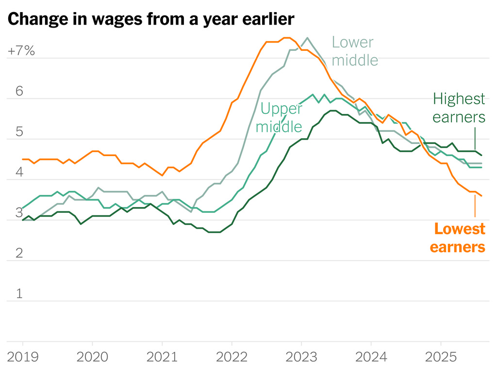 Another good sign for the inflation trends (but not so much for the bottom 90% in the K-shaped economy) is wage growth is declining to pre-COVID levels.