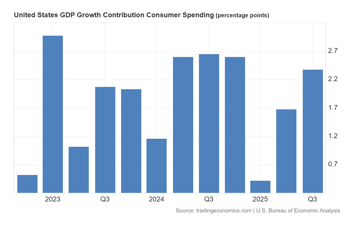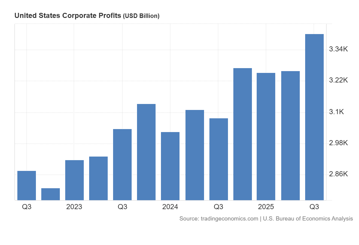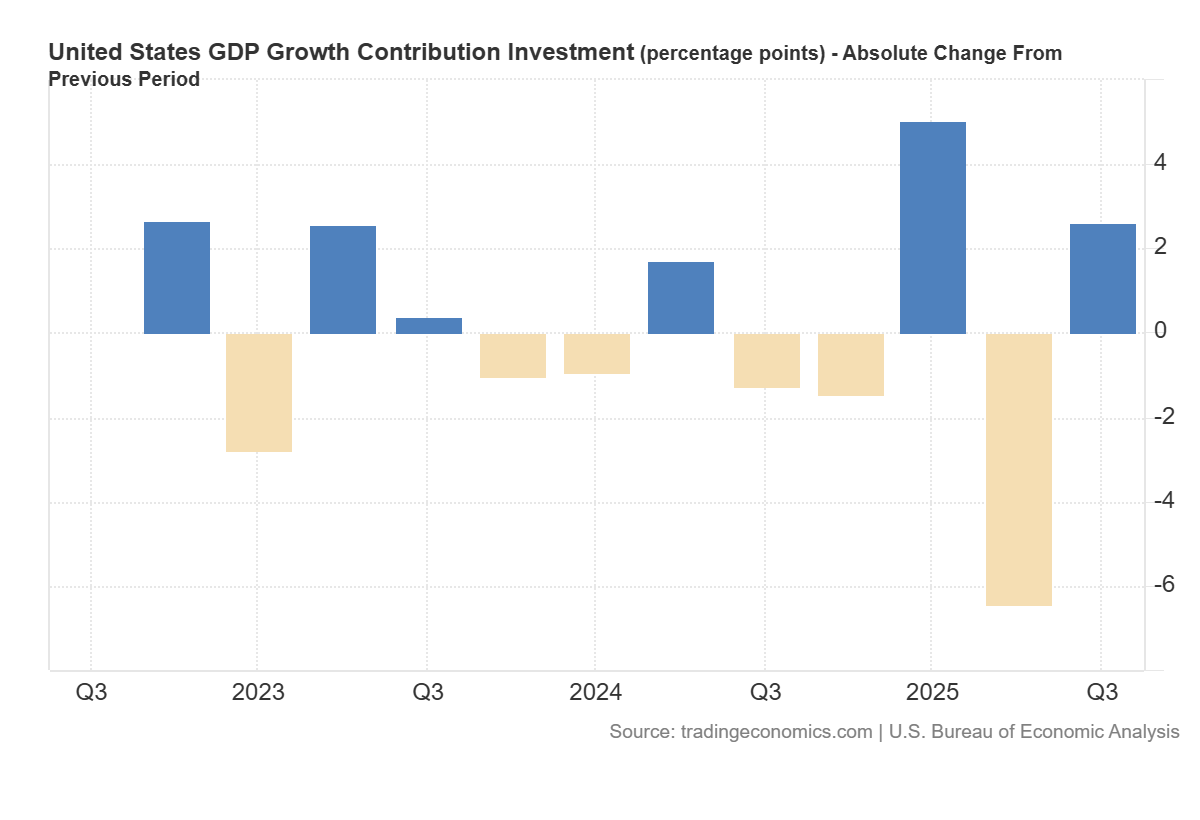 To be sure, the economy does look good. The US GDP annual growth rate was 2.3% as of 3Q25. Profit growth continues. Consumer spending is strong, growing 2.6%. Business investment is strong? Fixed investment was 2.6% but as I’ve discussed here and here, AI certainly has everyone excited and they’re investing gigantic sums to build it, but we need clarity on the business models.